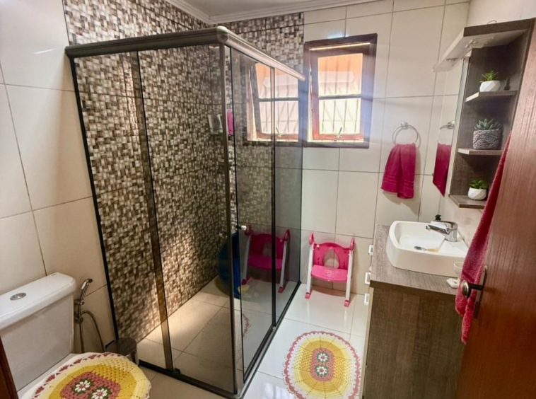 Essa casa além de oferecer conforto, oferece muito espaço para quem gosta de curtir o final de tarde em família em um pátio encantador. Composta por 03 dormitórios, banheiro social, sala ampla com lareira, cozinha com fogão campeiro, pátio com piscina com sistema de aquecimento, área de churrasqueira e vaga de garagem para vários carros. Terreno 22×30 de frente a fundos. Toda casa possuí rebaixamento em gesso.