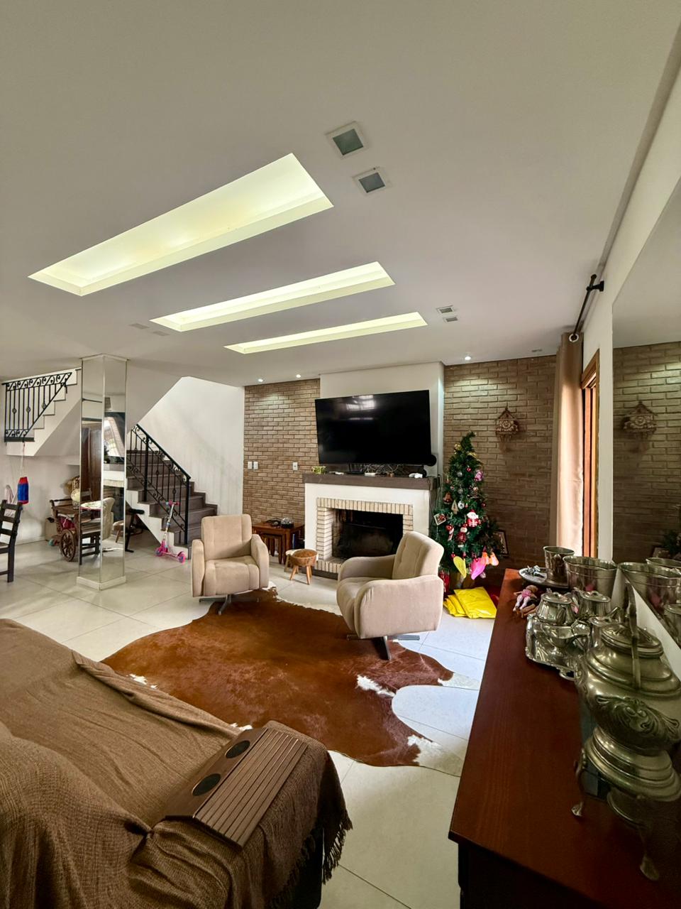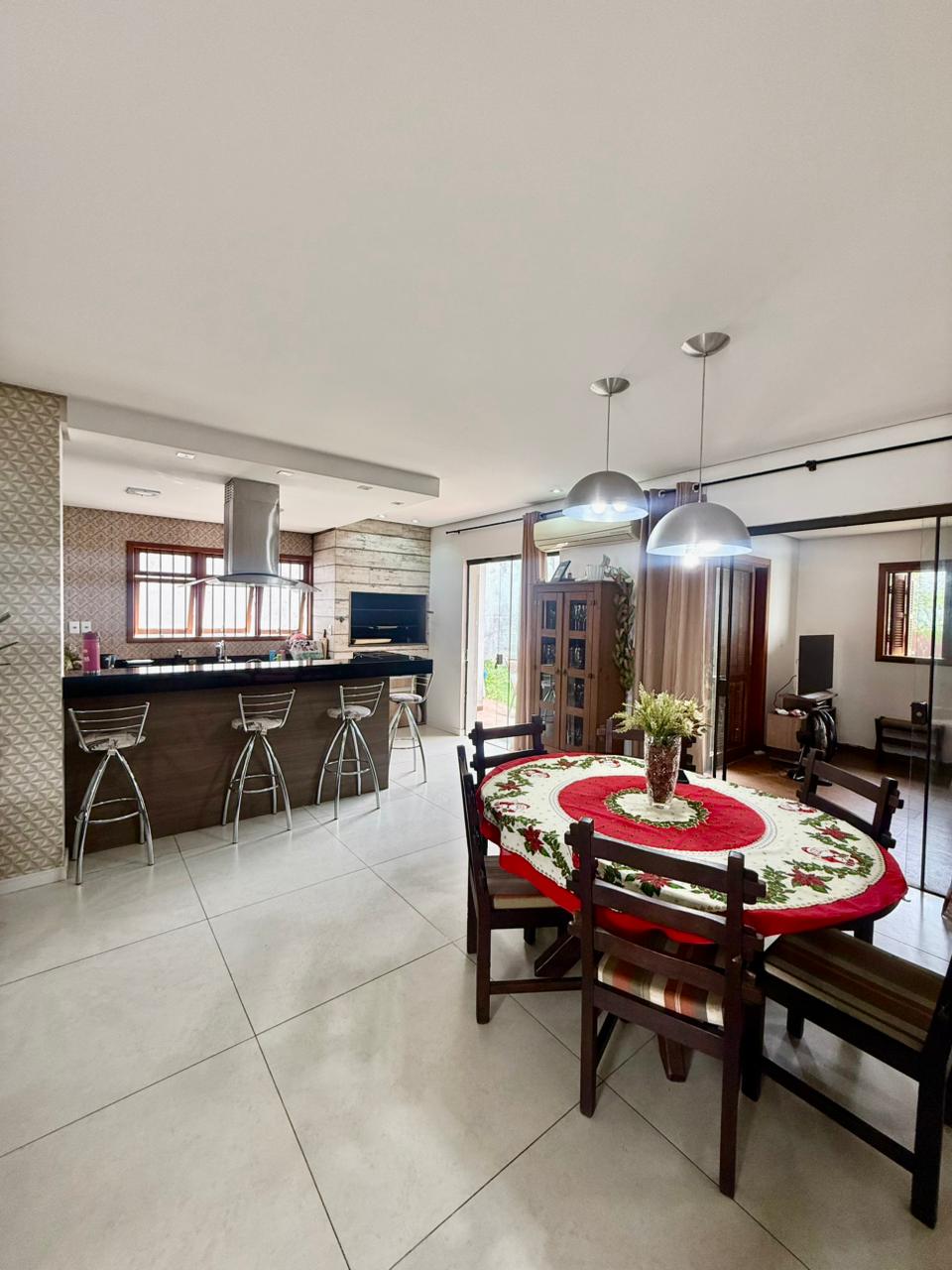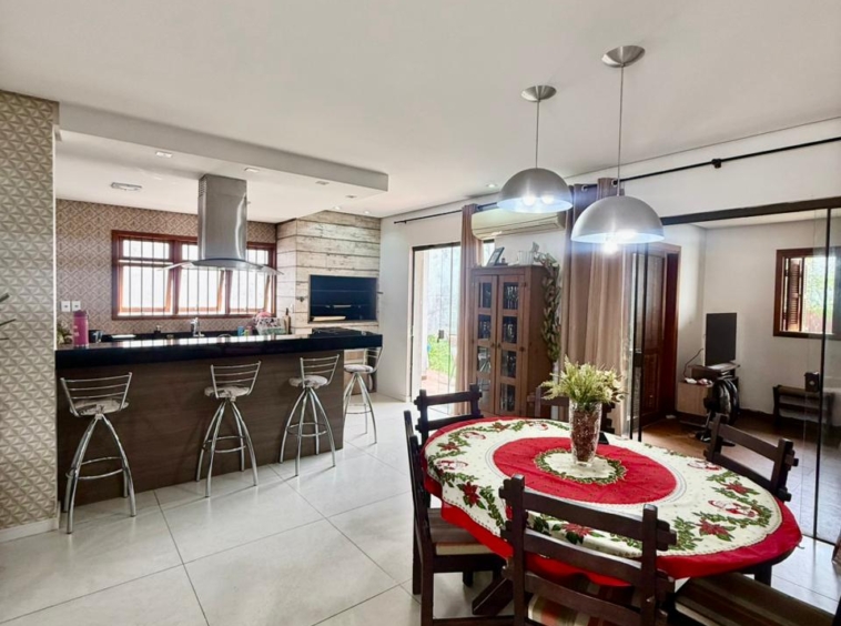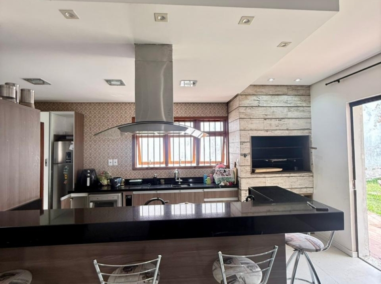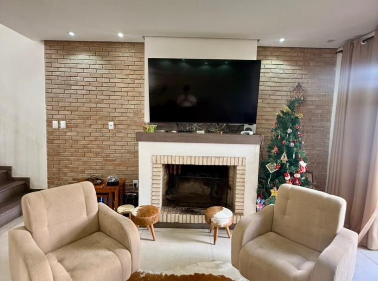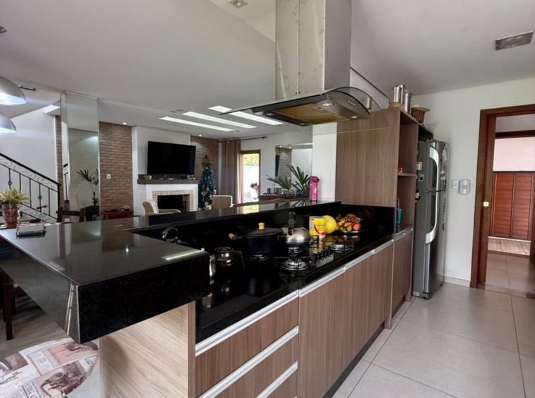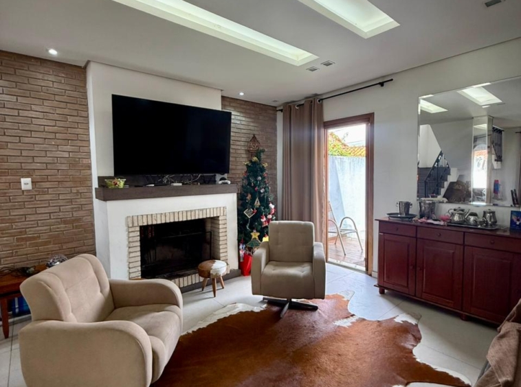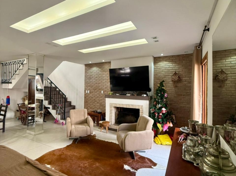 Composta por uma sala ampla com lareira, sala de jantar integrado a uma linda cozinha com churrasqueira, lavabo, escritório, 03 dormitórios sendo 01 suíte com hidromassagem e closet, banheiro social, área de serviço, pátio e vaga de garagem para 02 carros lado a lado.