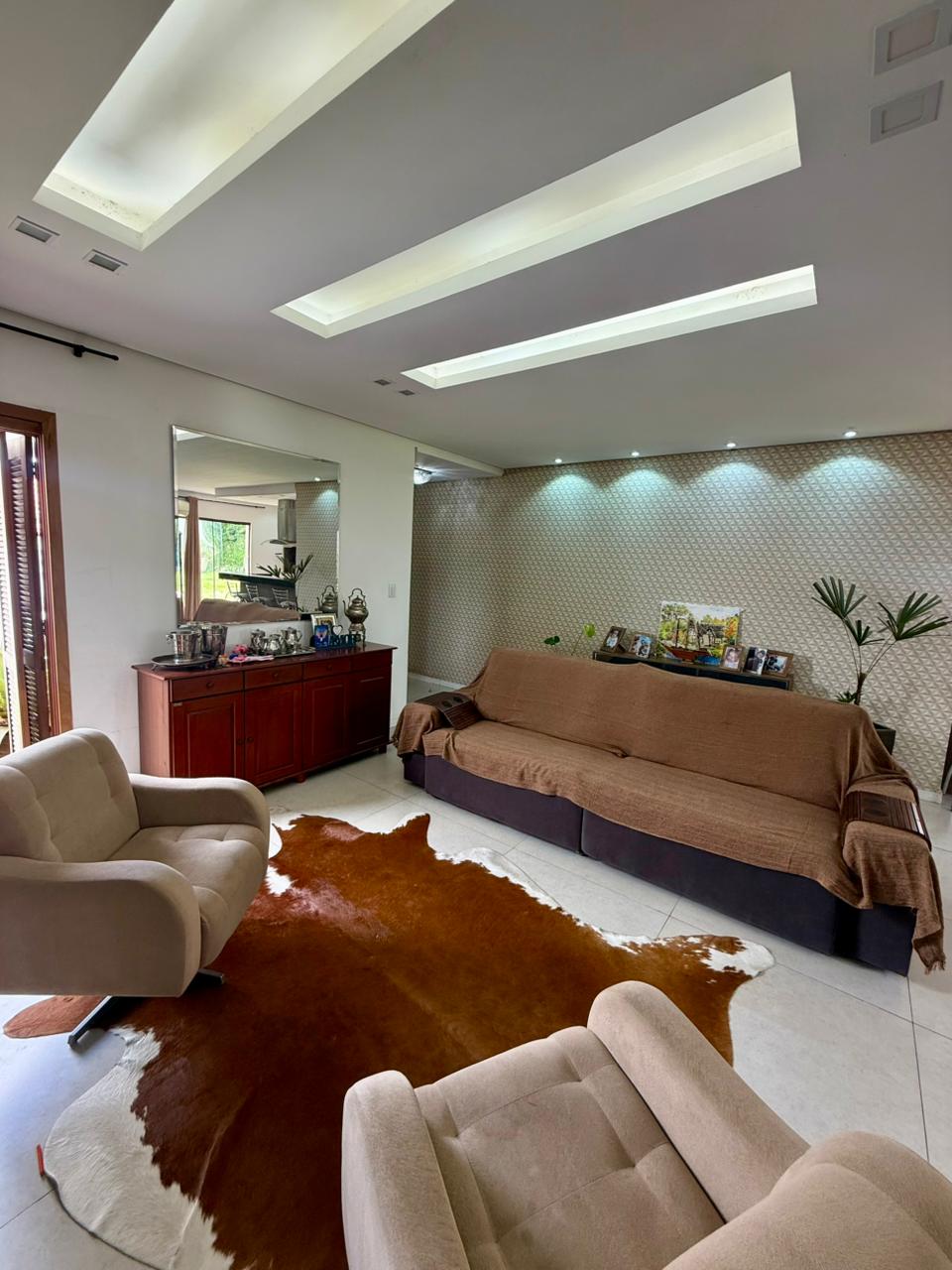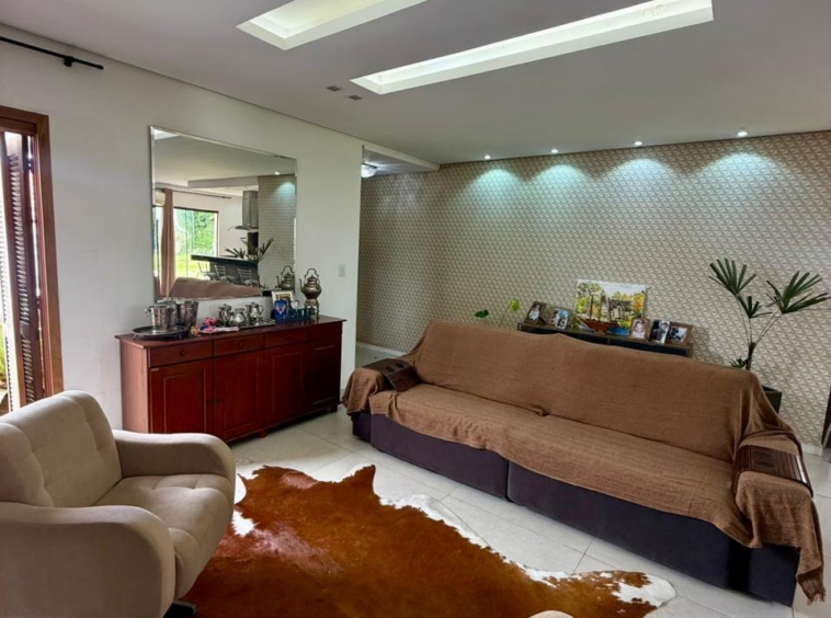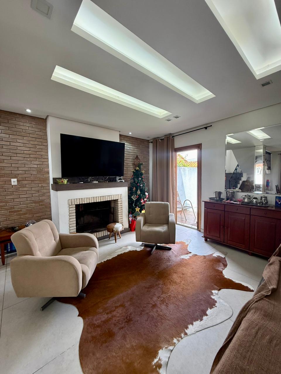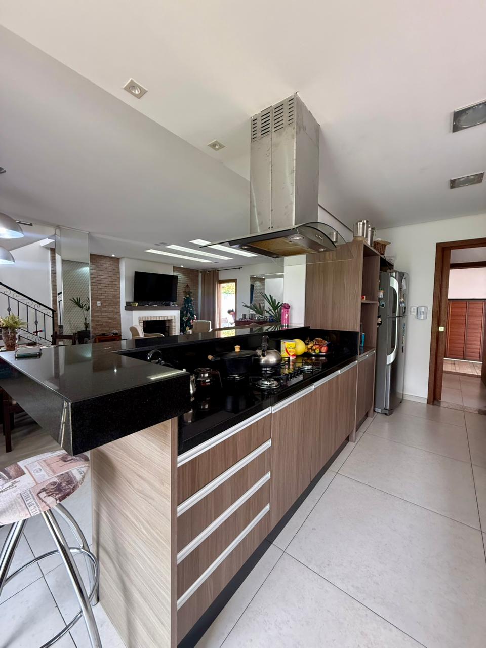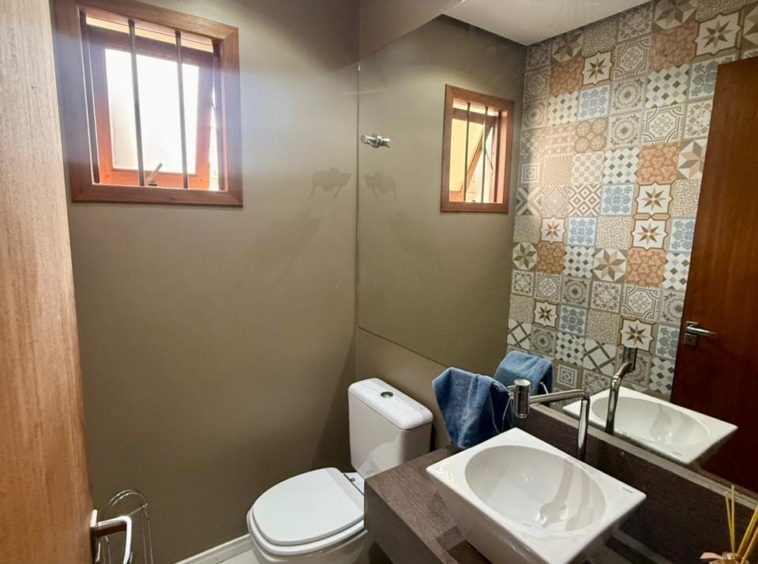 Composta por uma sala ampla com lareira, sala de jantar integrado a uma linda cozinha com churrasqueira, lavabo, escritório, 03 dormitórios sendo 01 suíte com hidromassagem e closet, banheiro social, área de serviço, pátio e vaga de garagem para 02 carros lado a lado.