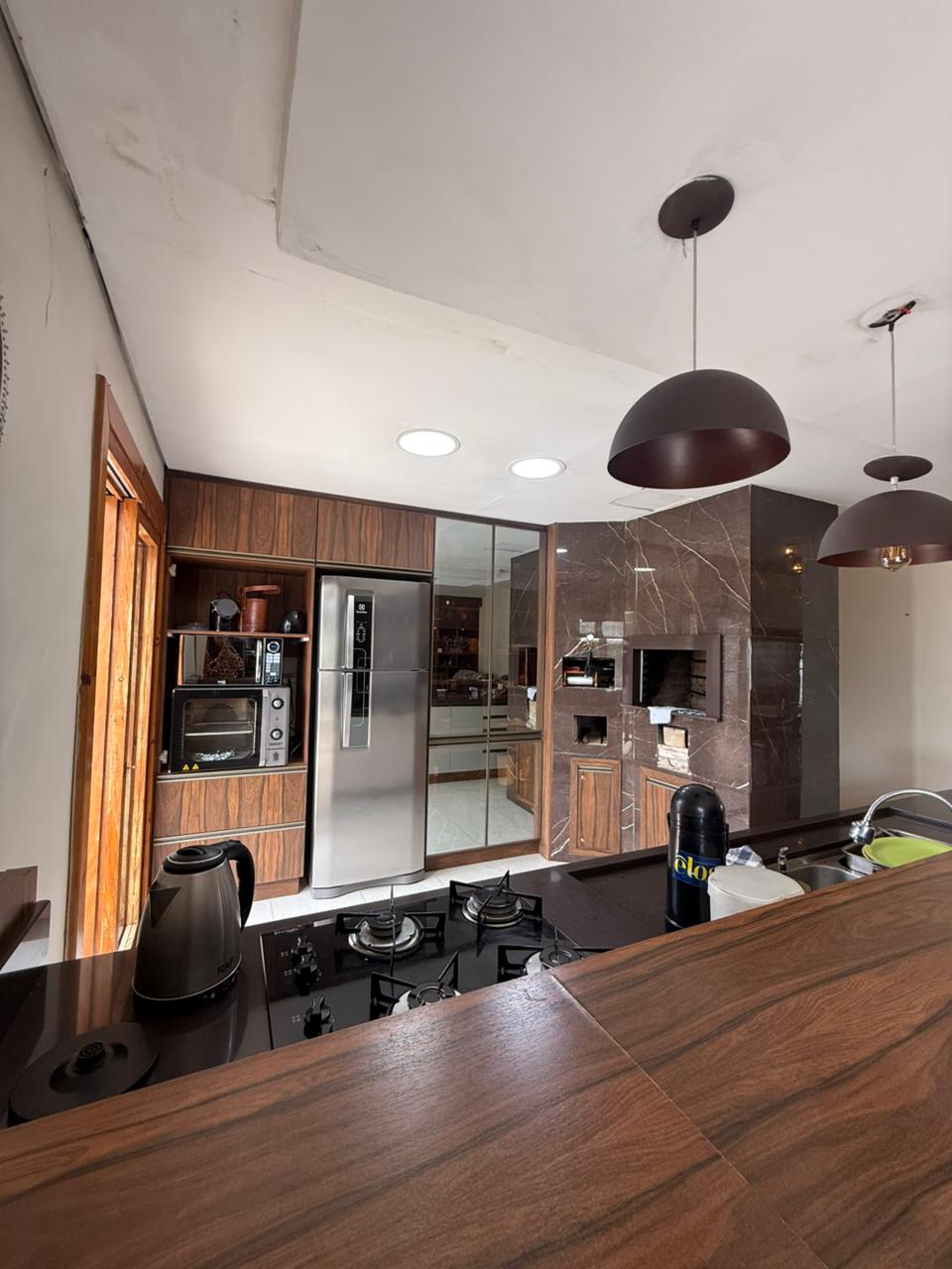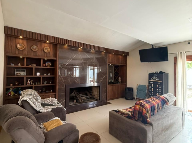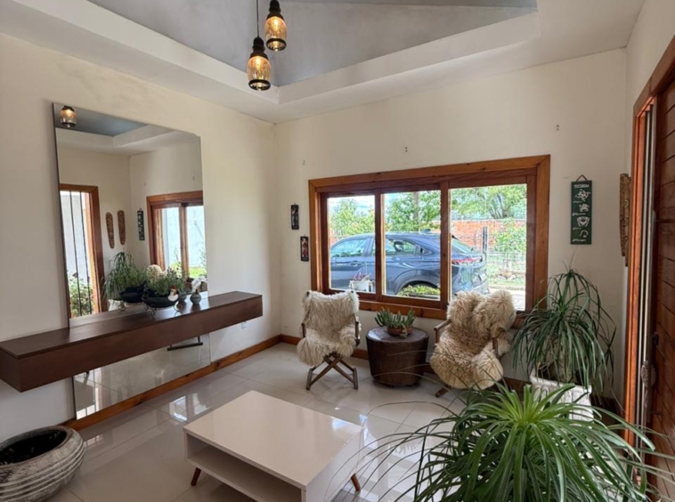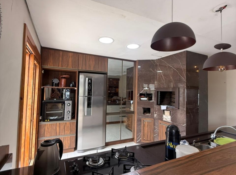 Excelente casa térrea com conforto, tranquilidade e espaço de sobra. O imóvel possuí 240m² de área construída, contando com uma sala ampla com ambientes integrados, sala de estar com lareira toda em mármore, sala de jantar, cozinha com bancada e móveis planejados, lavabo, e 03 suítes. Garagem para 02 carros, e entrada para mais.